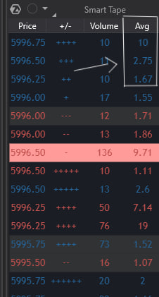 We know that many traders look at different trading patterns, order speed, key levels etc. but the average size is also important to better understand the size of the contracts traded, as shown in photo 1, time and sales show the average size of each trade. I am interested in having this information in a different view. could this function be integrated into the dom? next to recent bid asks?