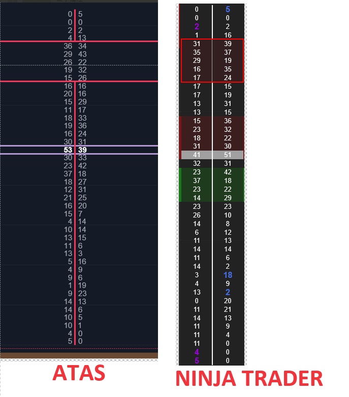 I found that within the same K line, the buying and selling volume of ATAS and NinjaTrader are different. I heard that ATAS uses the Ask/Bid mode to calculate the buying and selling volume, while NinjaTrader uses the Up/Down mode to calculate the buying and selling volume.