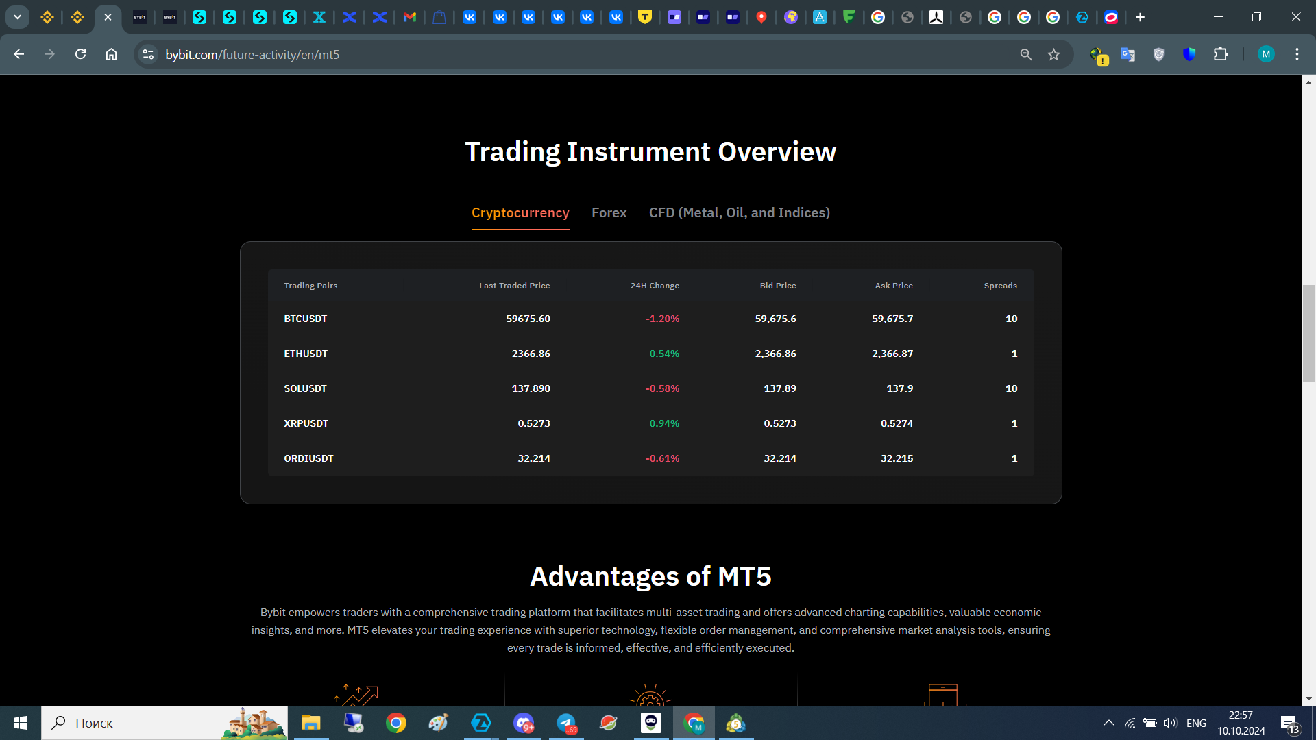 Мы все давно пользуемся BYBIT как криптобиржей, но знали ли вы что у них можно также открыть аккаунт МТ5 с доступом ко множеству инструментов, таких как: индексы, сырье, металлы и валюты? Как у любого форекс брокера, но есть ряд отличий и достоинств: