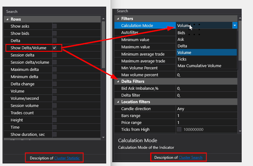 For example when you zoom out of a chart and want to highlight some candles you can not read the cluster statistics anymore and need to constantly hover on the values to see them. It would much more convenient to use the cluster search indicator for that but the calculations are not available.