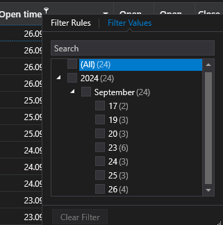 Please add an Profit/Loss per Day Overview Version where you can see the total Profit/Loss per Day in rows. At the moment you can select individual days but I could not display for example one specific month, with one line per trading day and the metrics for that day including P/L, commissions etc. as one table to export it.